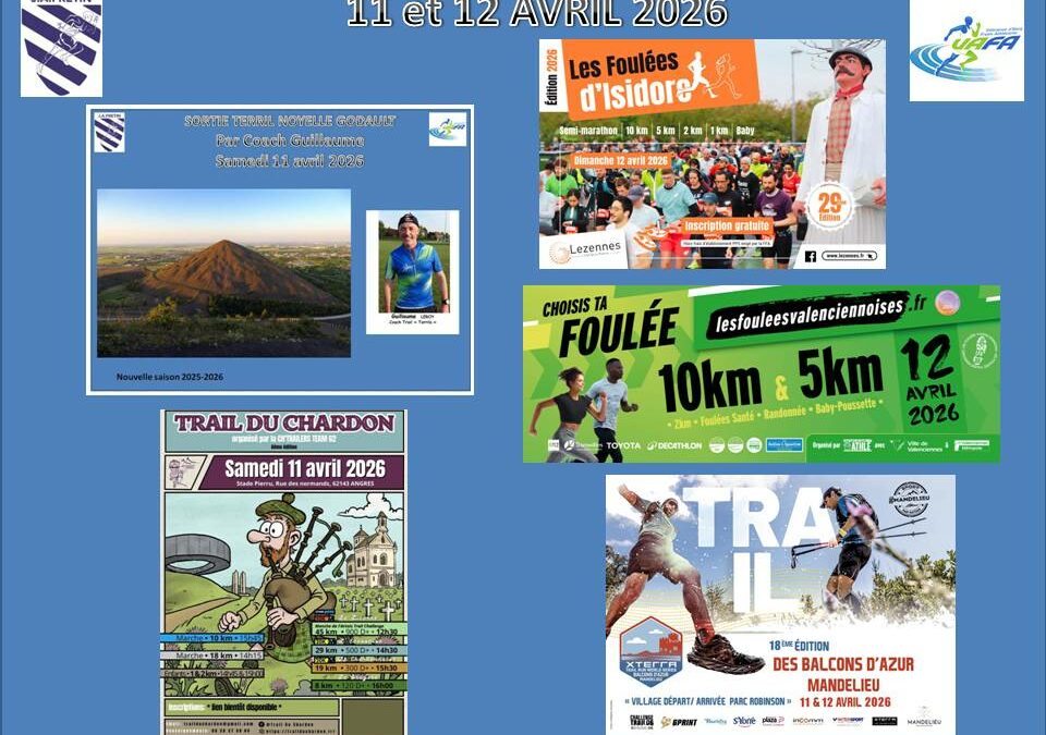 Oublions pas aussi la belle sortie trail sur les terrils de Noyelle Godault par Coach Guillaume ce samedi 10 avril 2026 !!